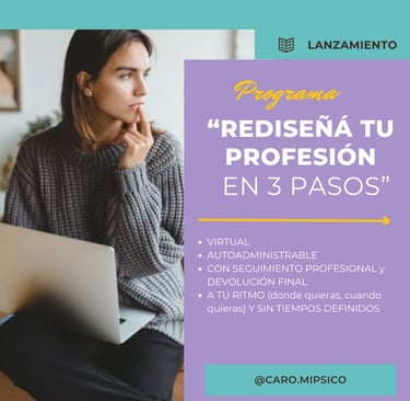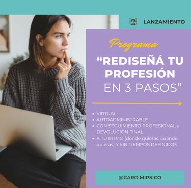 Reinvención Profesional es un programa VIRTUAL pensado para quienes quieren rediseñar su camino laboral y conectar con una profesión más alineada a su identidad y deseos.